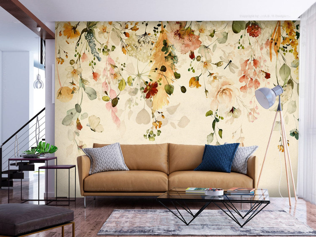 Valokuvatapetti - Kauniita kukkia kermanvärisellä taustalla, 142346