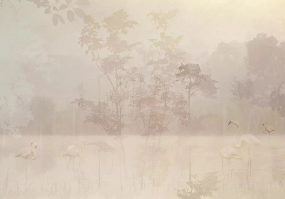 Fototapetes ar flamingo maigos pasteļtoņos - nopirkt viesistabai G-ART