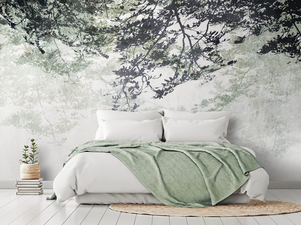 Fototapetes guļamistabai ar dabu - Zari ar lapām uz gaiša fona G-ART