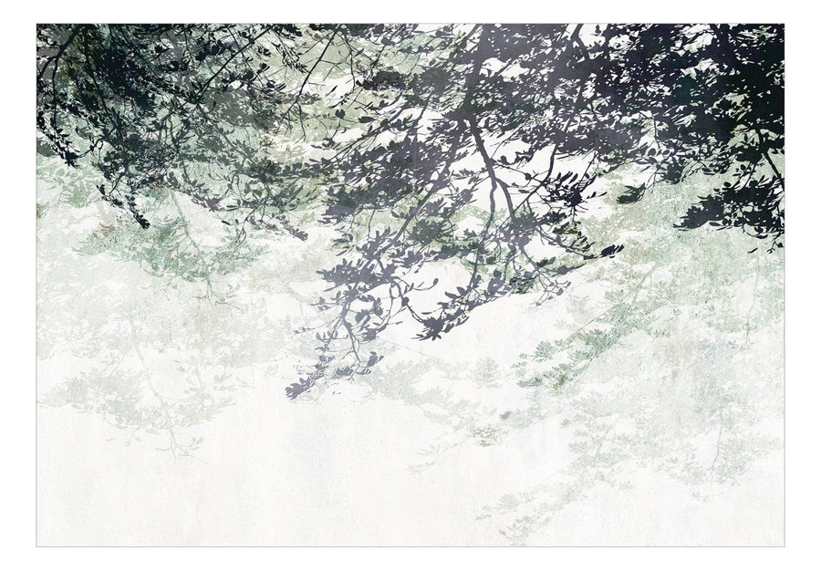 Valokuvatapetti - Lehdet oksat vaalealla pohjalla, 148809