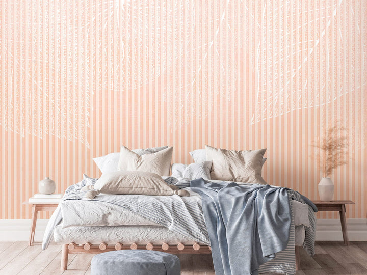 Valokuvatapetti lehdillä - kuvio luonnollisilla elementeillä persikan värissä, 143798