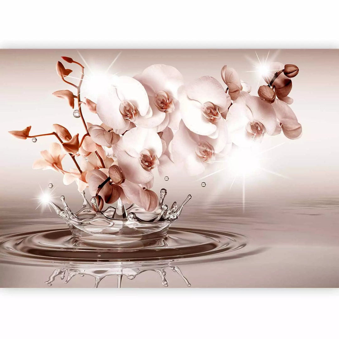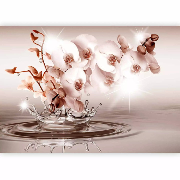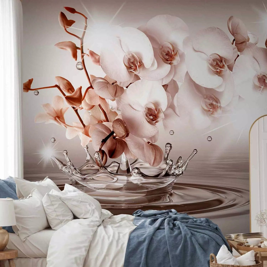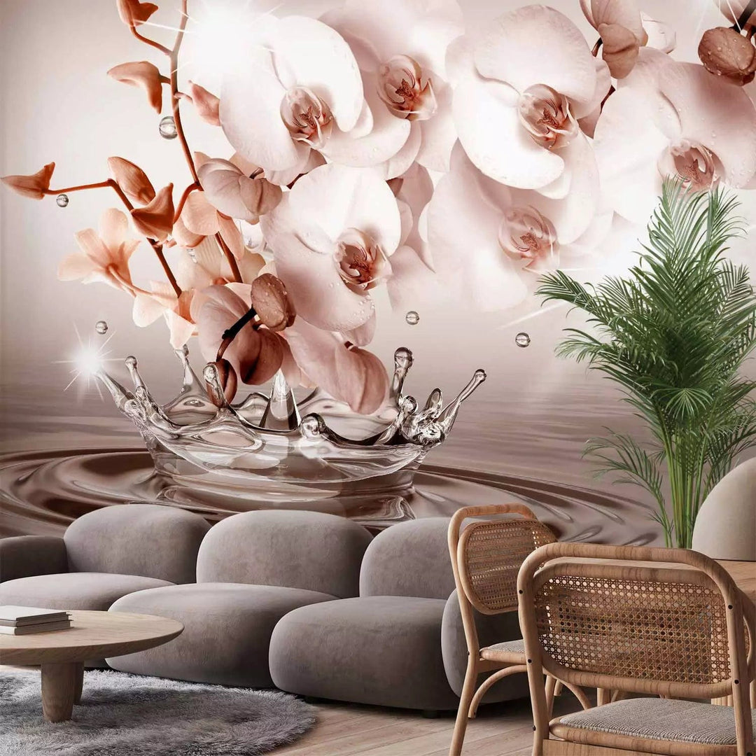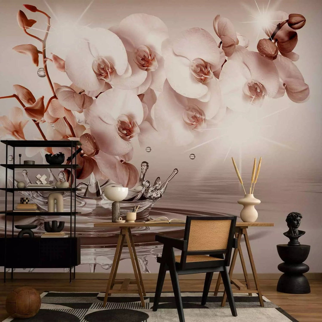 Valokuvatapetti lämpimin sävyin orkideoilla - hellyyden kosketus, 71773