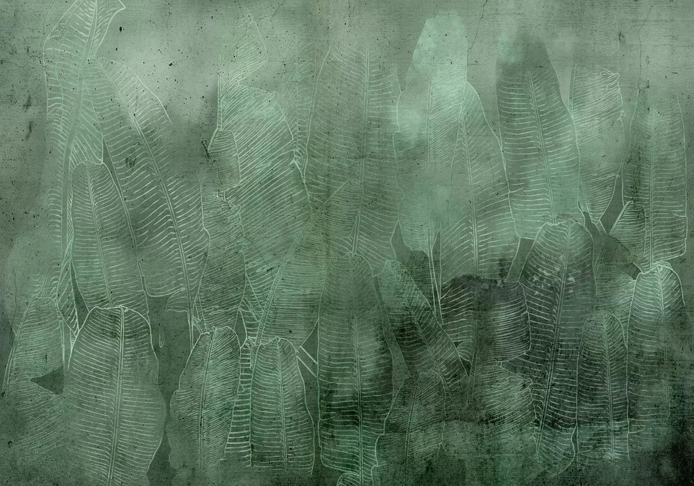Fototapetes ar tropiskām lapām - Banānu lauks - zaļā, pelēkā G-ART
