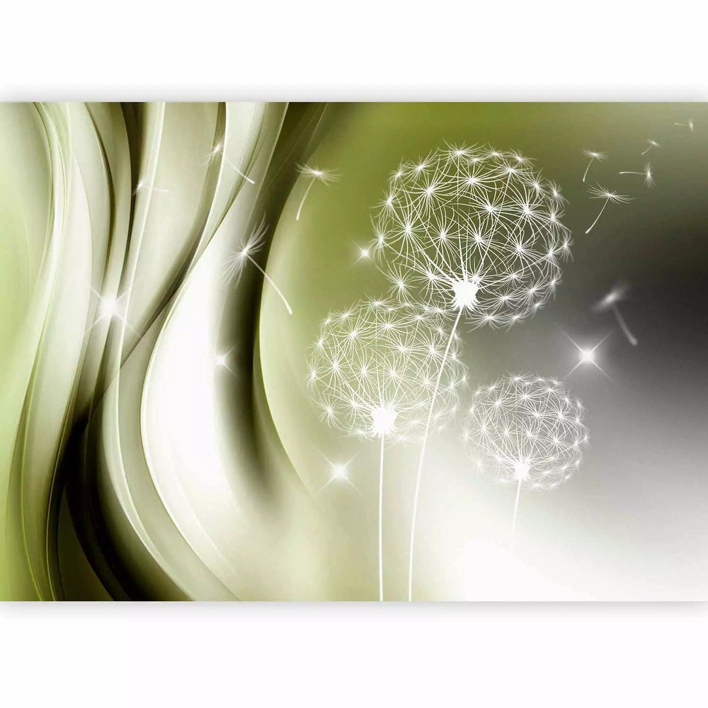 Valokuvatapetti vihreiden sävyjen voikukkien kanssa - Green softness, 91895