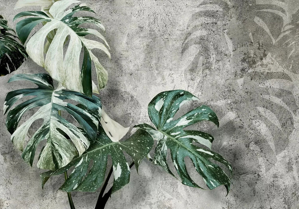 Fototapetes ar zaļām Monstera lapām uz tumši pelēka fona, 135503 G-ART