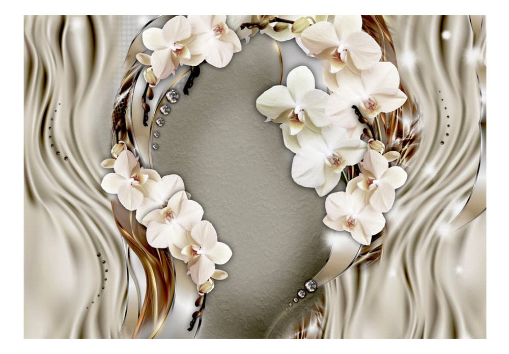 Valokuvatapetti orkideat tyylikkäällä satiinitaustalla - Reflections, 60792