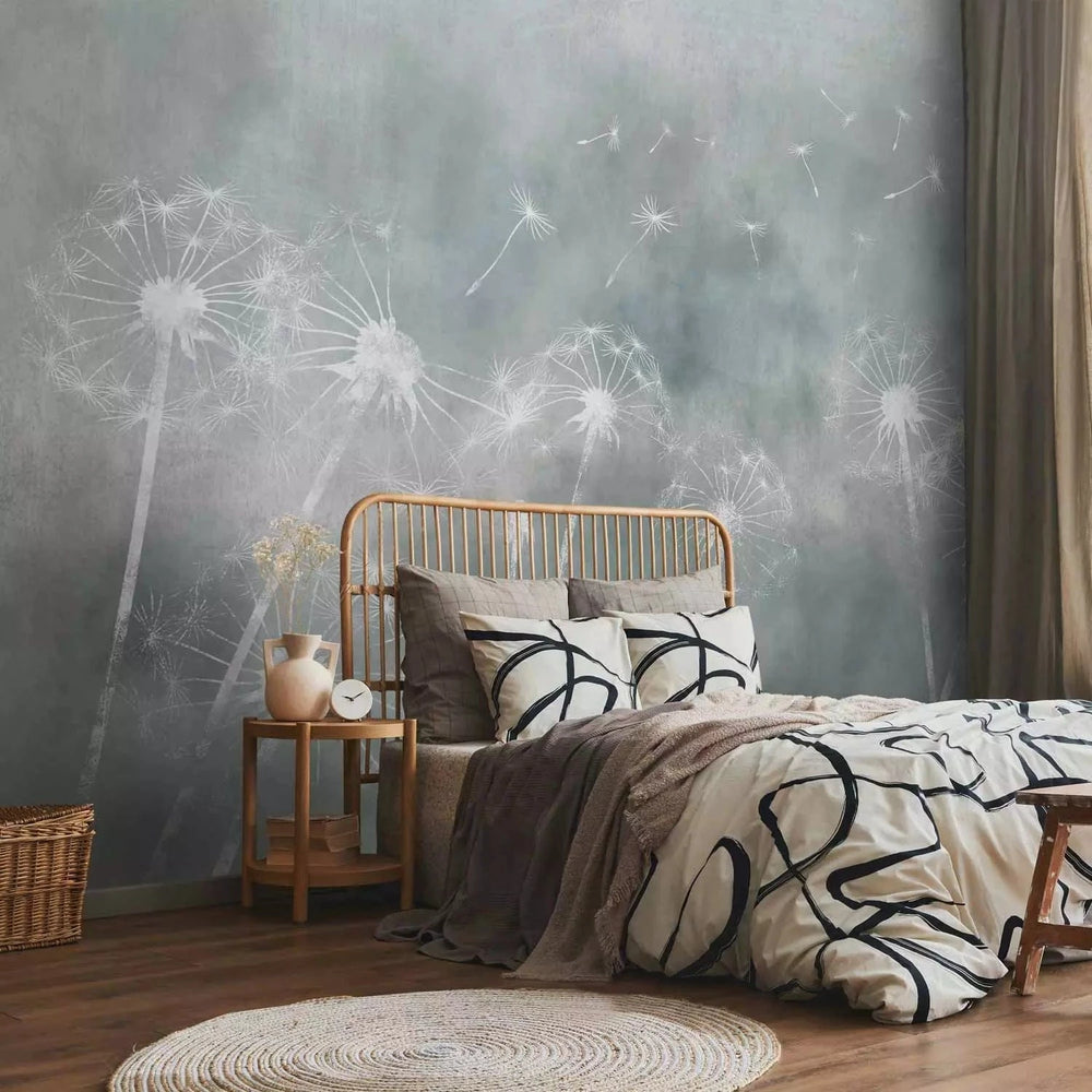 Valokuvatapetti - Voikukat ja tuuli (siniharmaa) - 143543