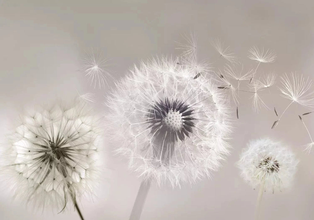 Fototapetes ar pienenēm silti pelēkā krāsā -  Pienene un vējš, 135754 G-ART