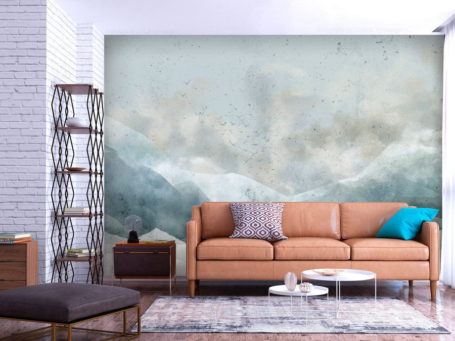 Fototapetes pļavas ziediem: zaļā zilā ar gaišu divānu, 60479 G-ART