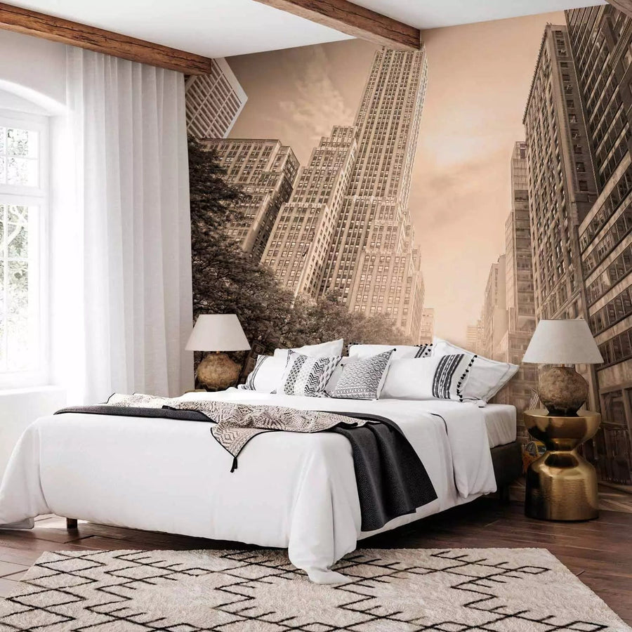 Valokuvatapetti - New Yorkin arkkitehtuuri ja seepianvärinen taksi, 61501
