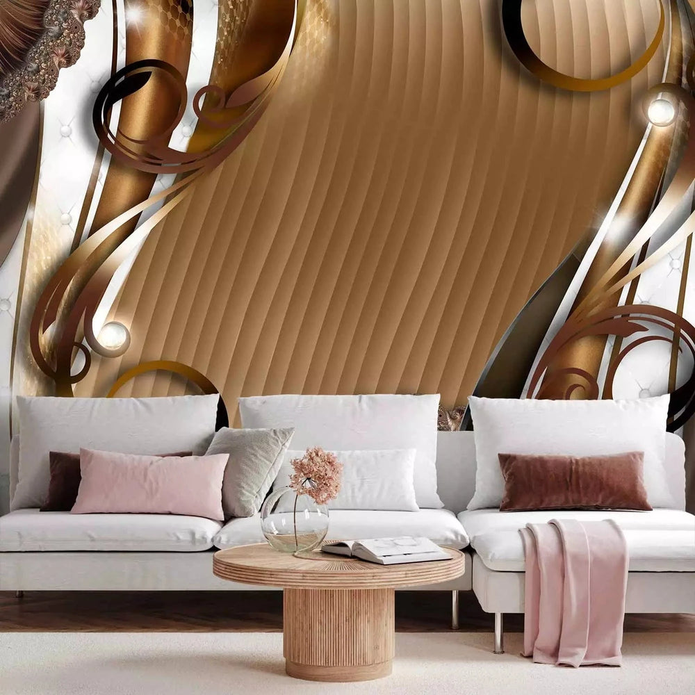 Fototapetes ar abstraktiem rakstiem un ziedu motīviem brūnā krāsā G-ART