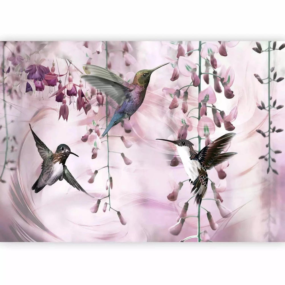 Fototapetes - Lidojoši kolibri starp ziediem rozā toņos, matētas G-ART
