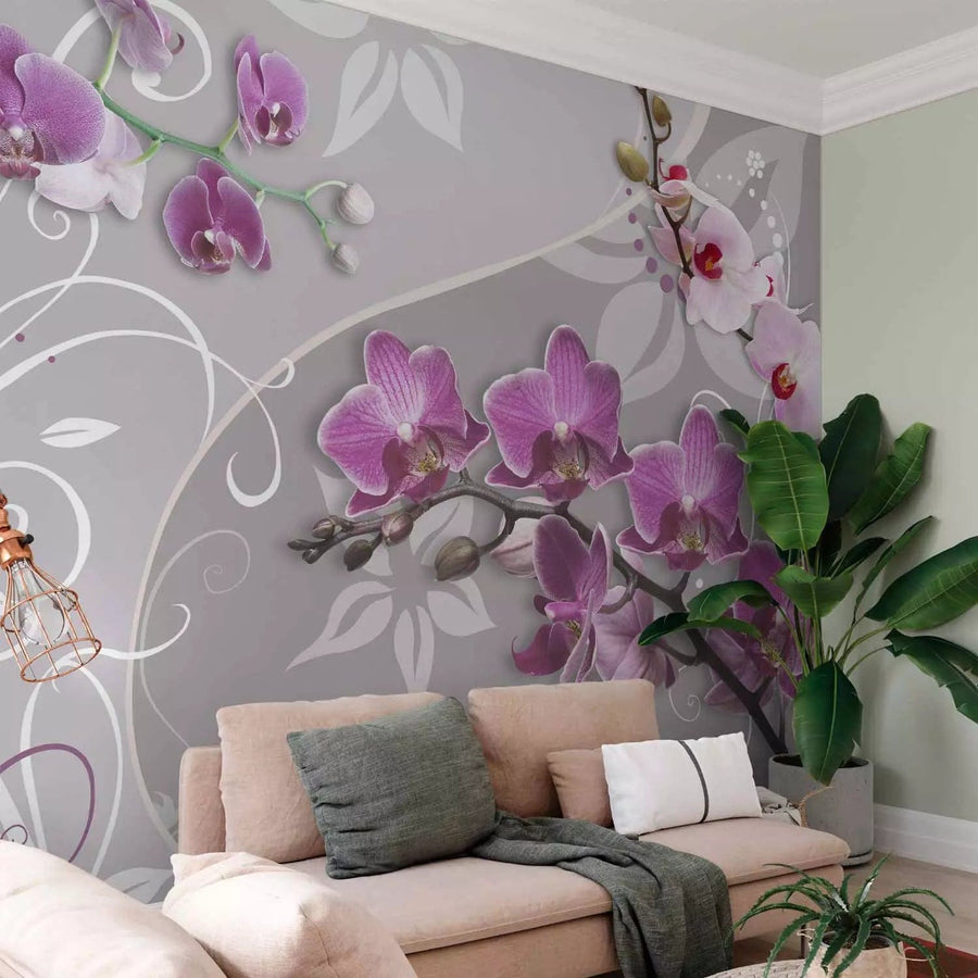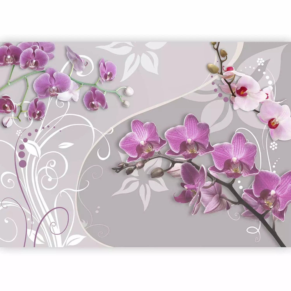 Fototapetes - Violetas orhidejas uz fona ar iedomātiem elementiem, 60298  G-ART