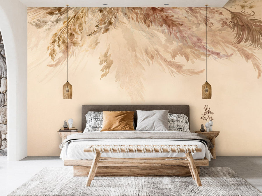 Fototapetes guļamistabai ar dabisku rakstu bešā krāsā - 143840 G-ART