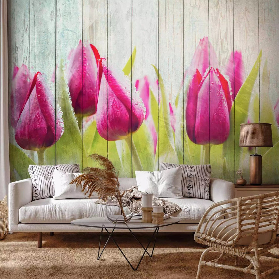Valokuvatapetti 60343 Tulppaanit valkoisella puulla