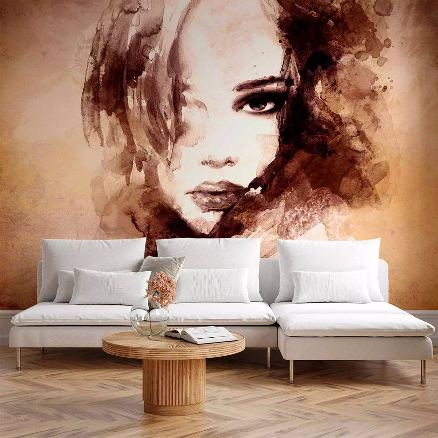 Fototapetes - sievietes sejas portrets akvareļa stilā brūnā krāsā G-ART