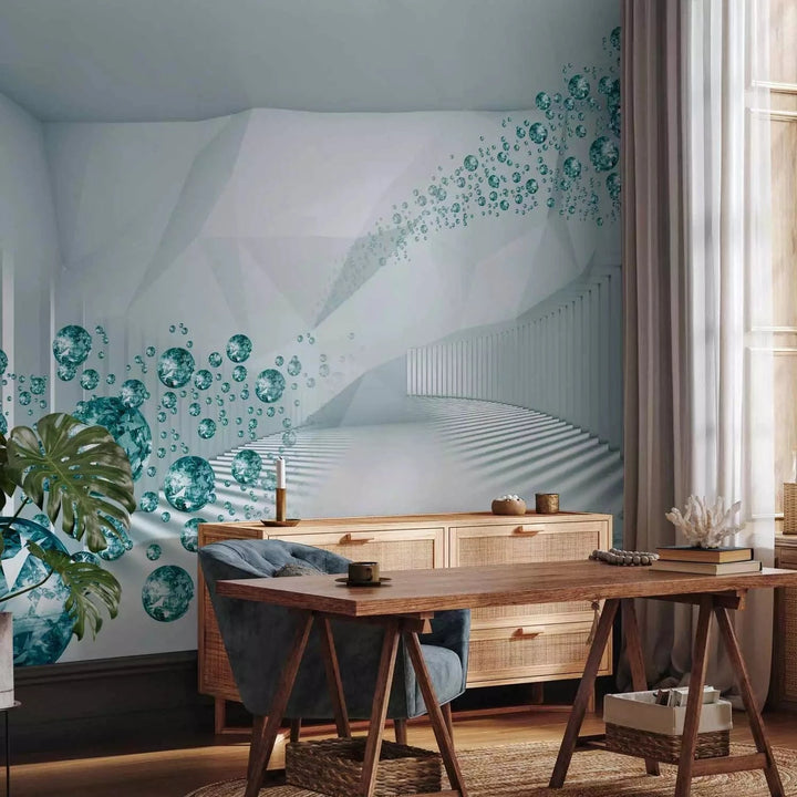 Valokuvatapetti - 3D-geometrinen abstraktio sinisillä timanteilla, 62513