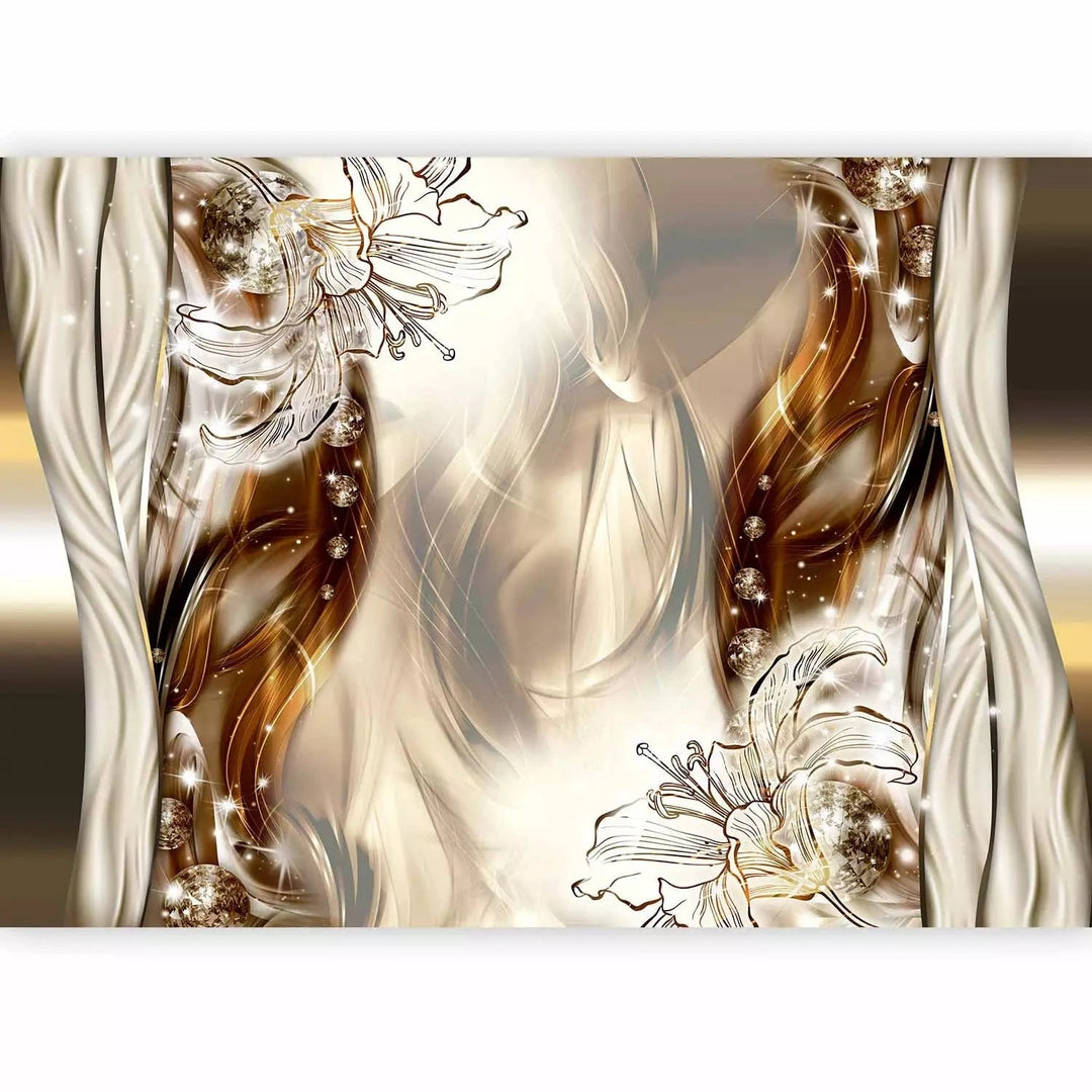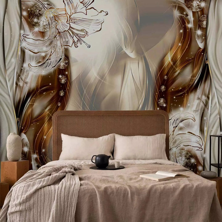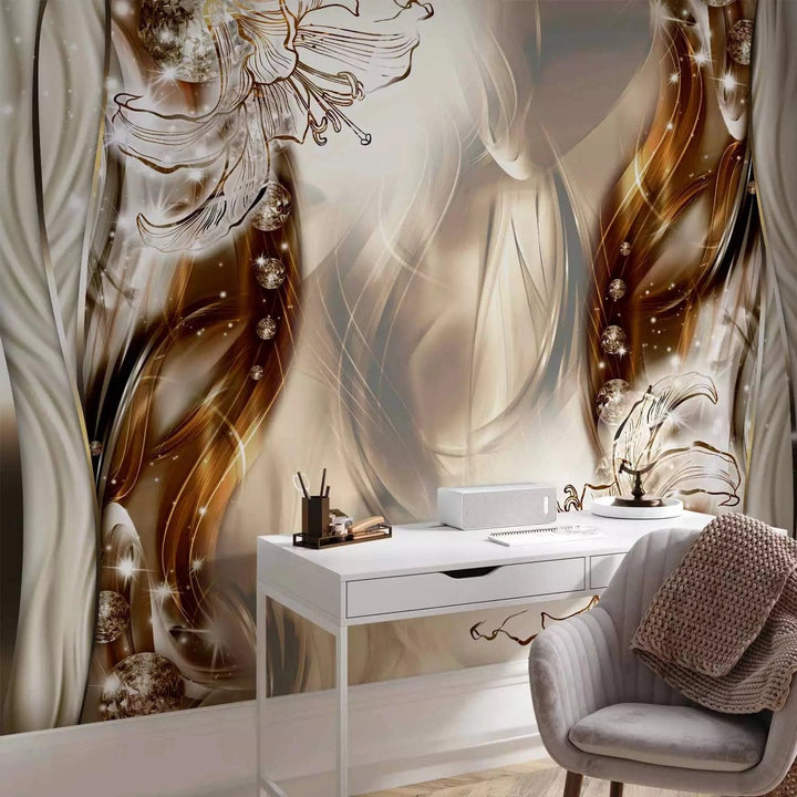 Valokuvatapetti jossa on tyylikäs kukka-abstraktio ruskean sävyissä, 64136