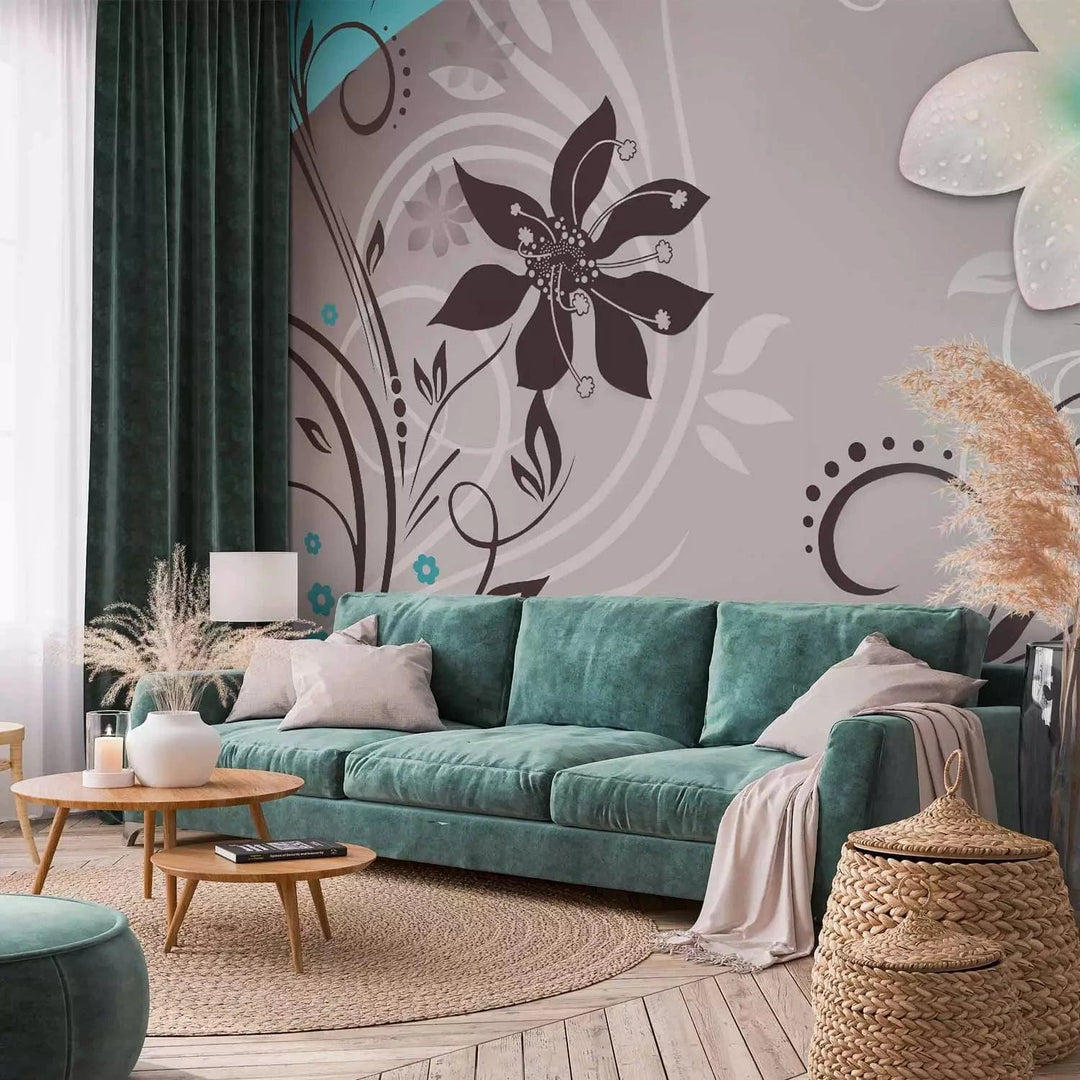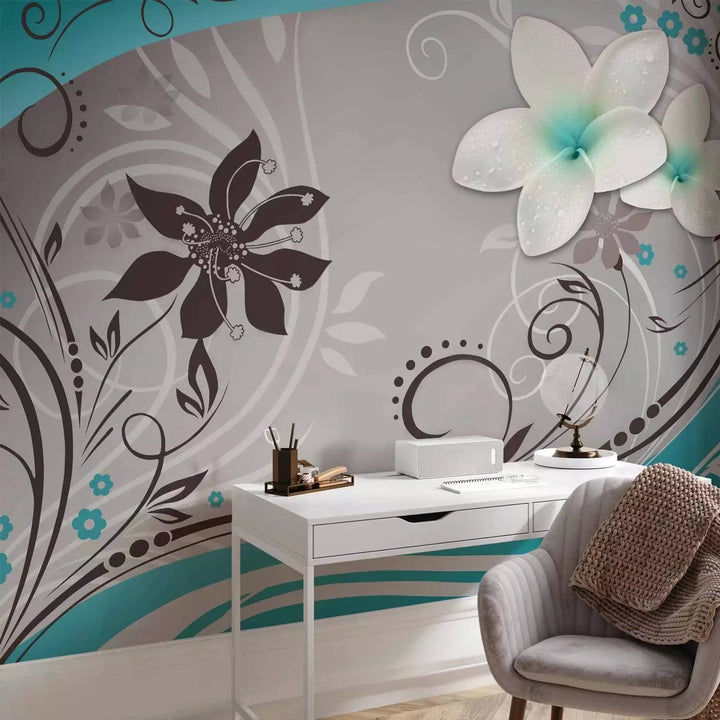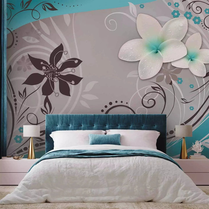 Valokuvatapetti turkoosin väriset kukat - Morning Dreams, 60727