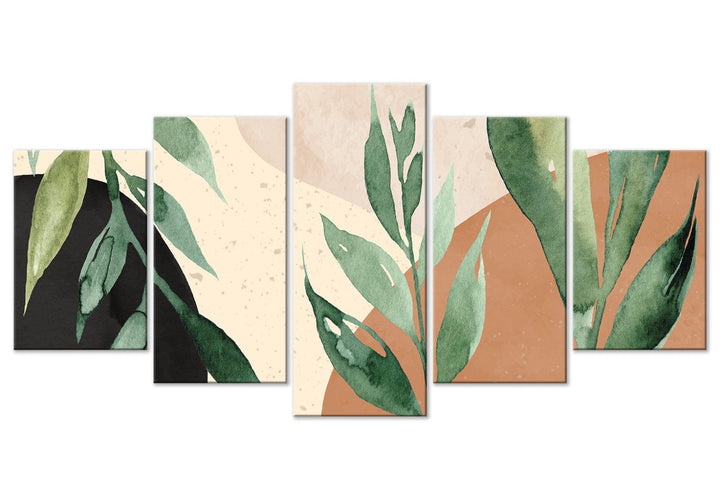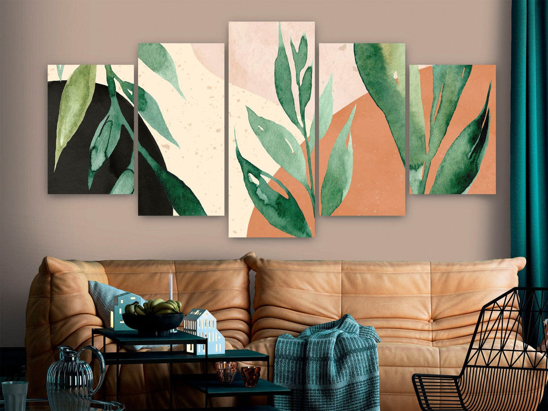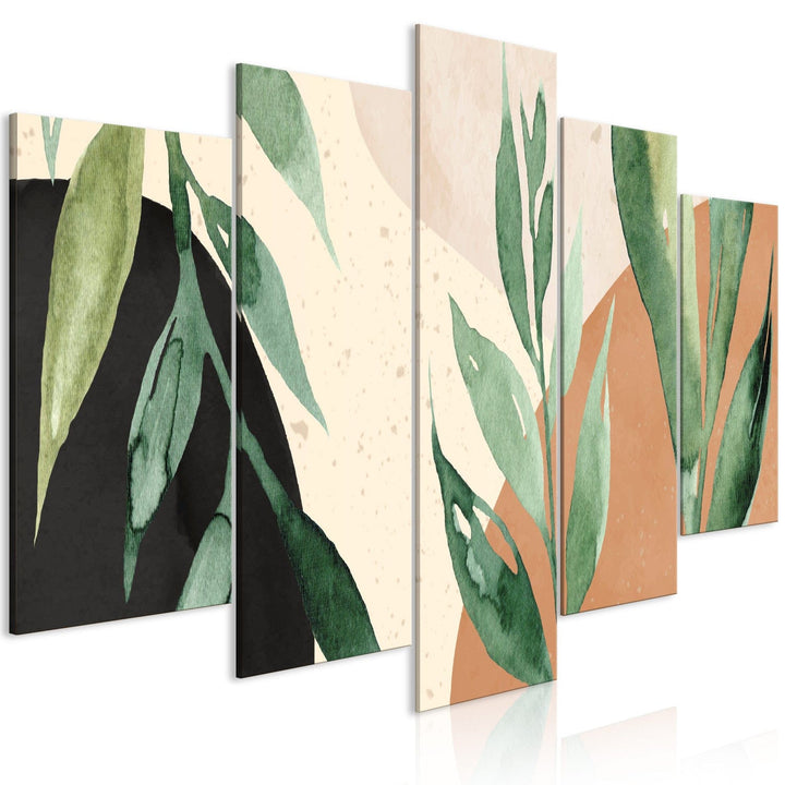 Canvas-taulut - Suuret lehdet abstraktilla taustalla beige ja ruskea, 151429