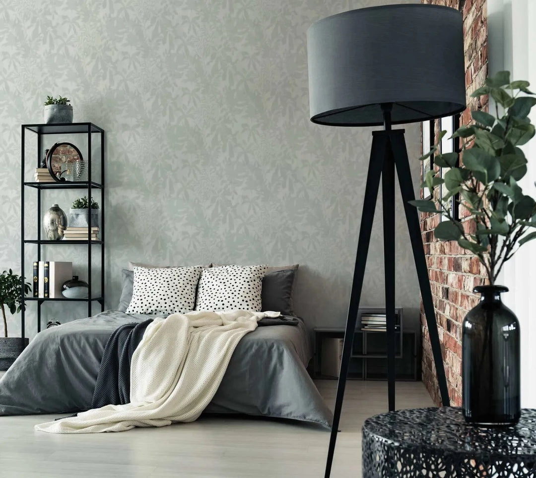 Daniel Hechterin tyylikäs vihreänharmaa tapetti, jossa on lehtikuvio, luo luonnollisen ja harmonisen ympäristön.
