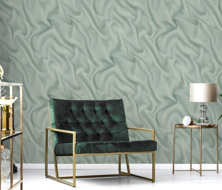Tässä tapetissa on ainutlaatuinen 3D-efekti, jossa on kiiltävä aaltokuvio kauniissa turkoosissa värissä. Se antaa seinillesi ylellisen ilmeen ja lisää ainutlaatuisen ja ajattoman tyylin mihin tahansa asuintilaan.