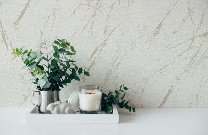 Koe hillitty eleganssi Plaster Luxe -malliston avulla – moderni tapettisarja, joka on saanut inspiraationsa kipsin hienostuneesta tekstuurista ja jota on parannettu metallinhohtoisilla tehosteilla.