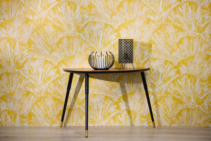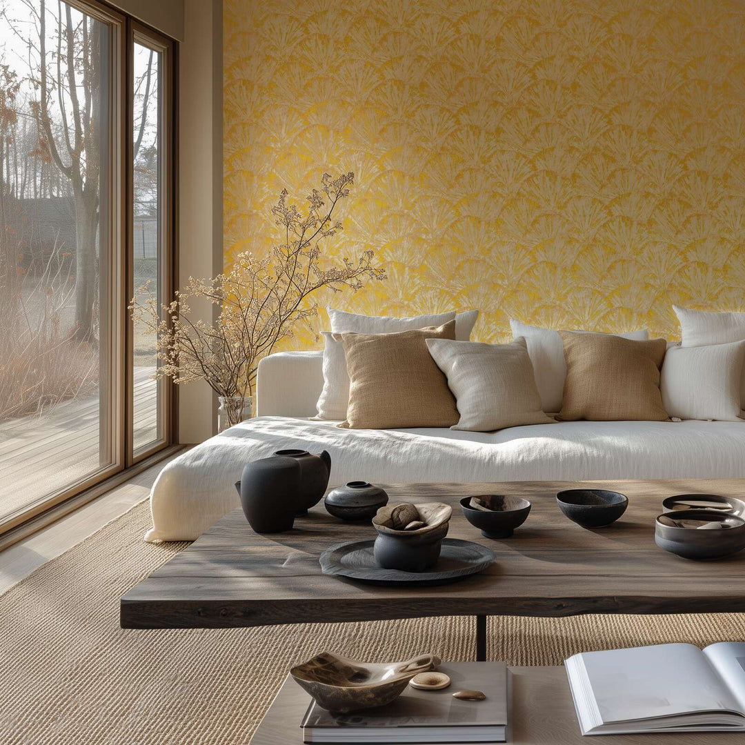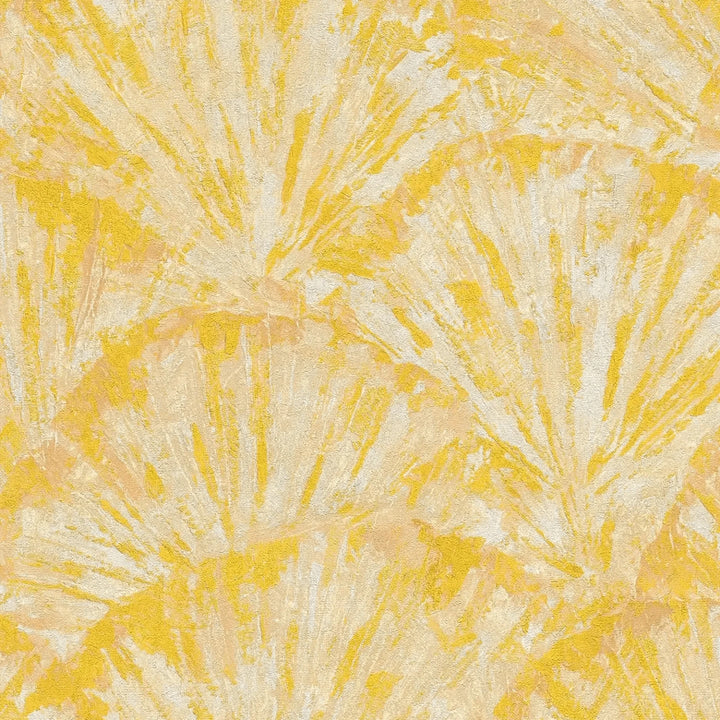 Hienojakoinen, lehtiä muistuttava tapetti, keltainen, 2767240