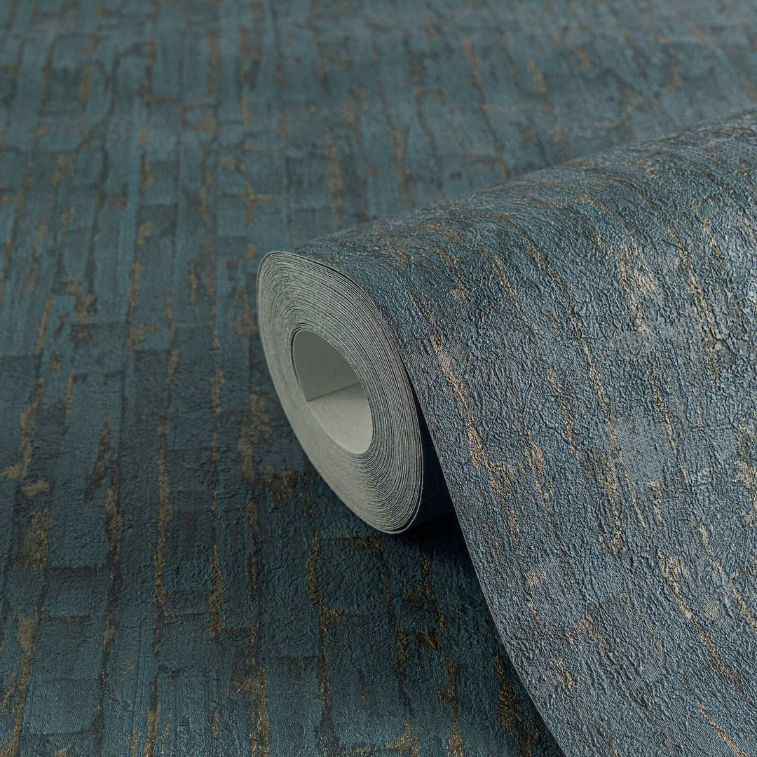 Tapetti, jossa on kuvioitu kangas, hieno rakenne - sininen, kultainen - 3000351