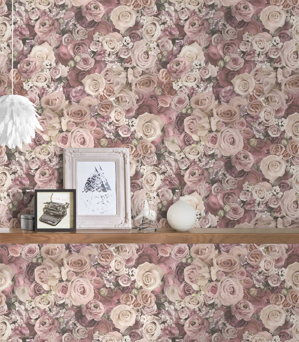 Tapetes ar austrumu ziedu motīviem ar rozā akcentu AS 379121 AS Creation