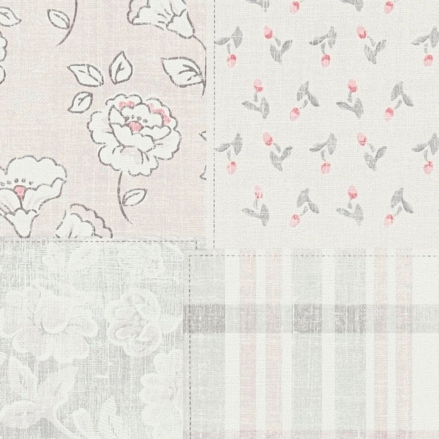 Kantrī stila tapetes ar ziedu rakstu: pelēkā un rozā krāsā, AS 390663 AS Creation