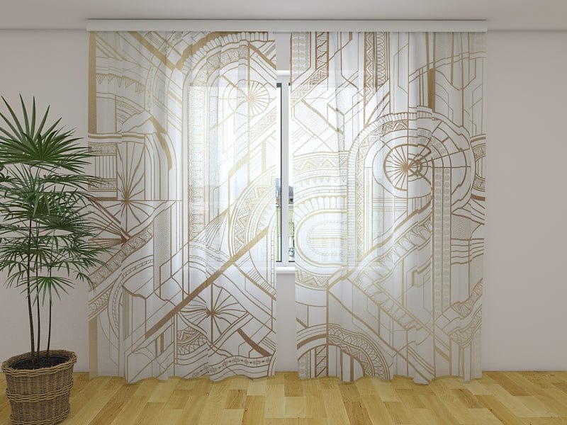 Dienas un nakts aizkari - Ģeometrisks zelta un balta raksts  Tapetenshop.lv