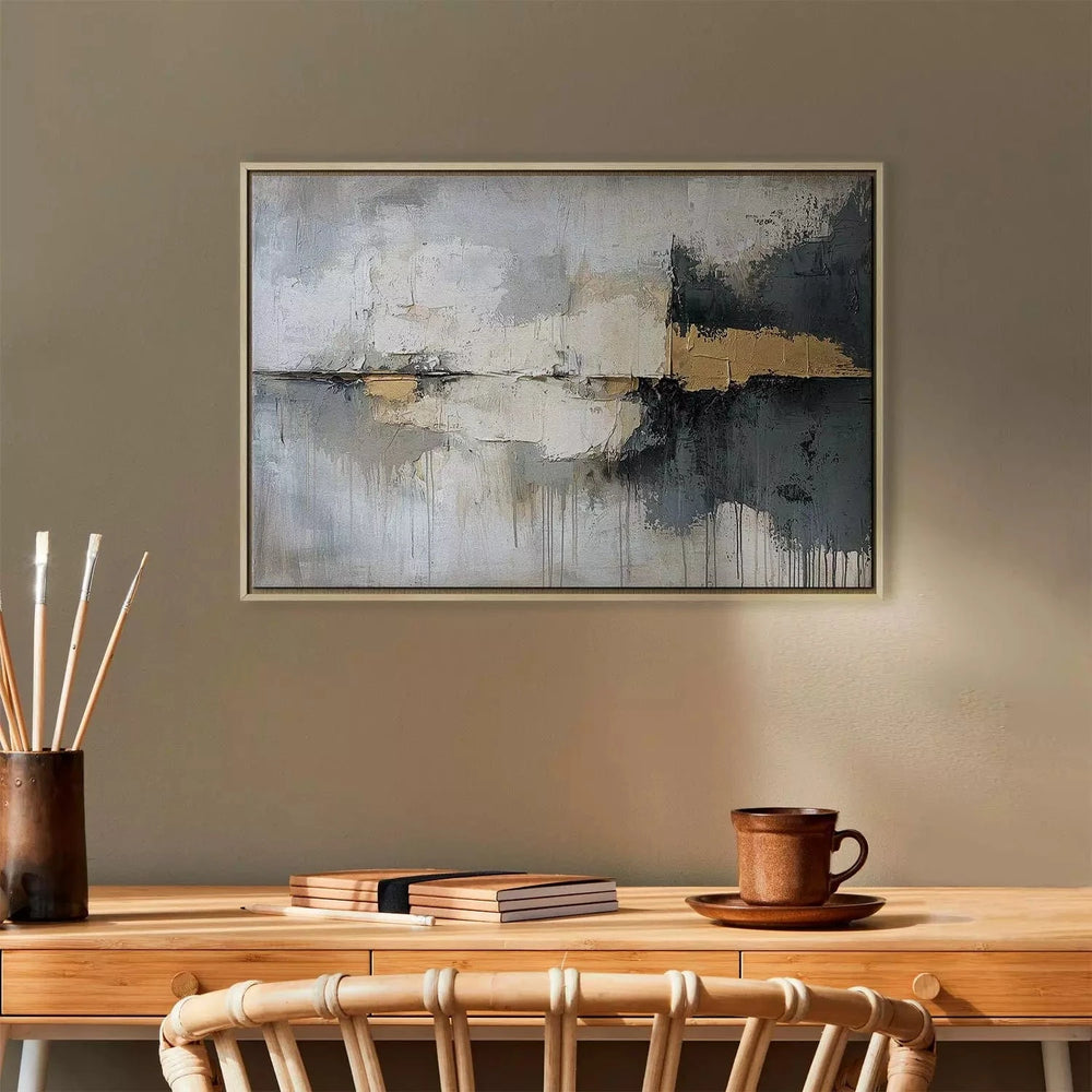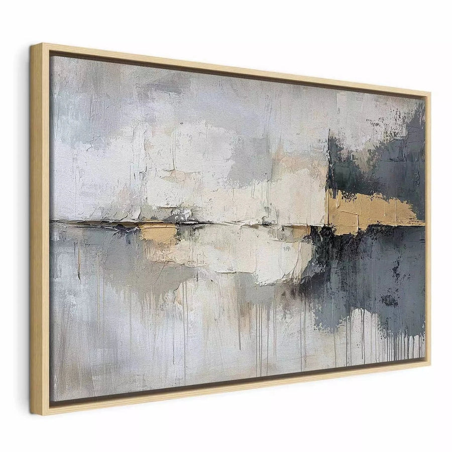 Glezna melnā koka rāmī - Abstrakcija pelēkos un zeltā toņos - 161996 G ART