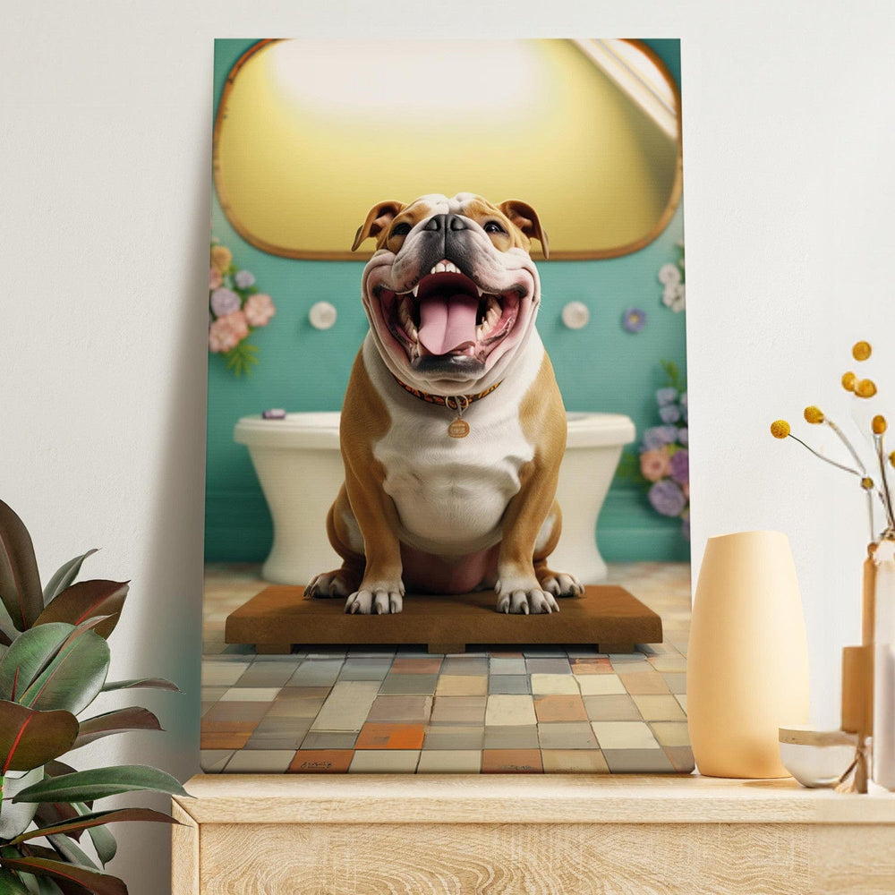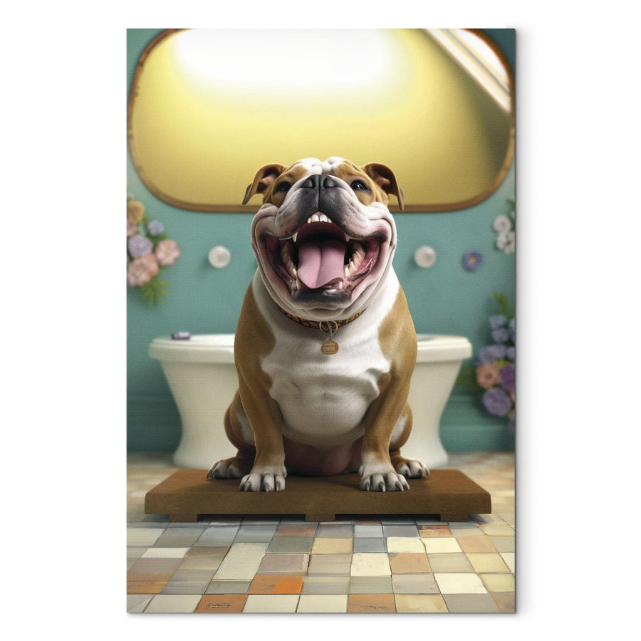 Canvas-taulut - Ranskalainen bulldoggi - koira odottaa kylpyhuoneessa, 150107