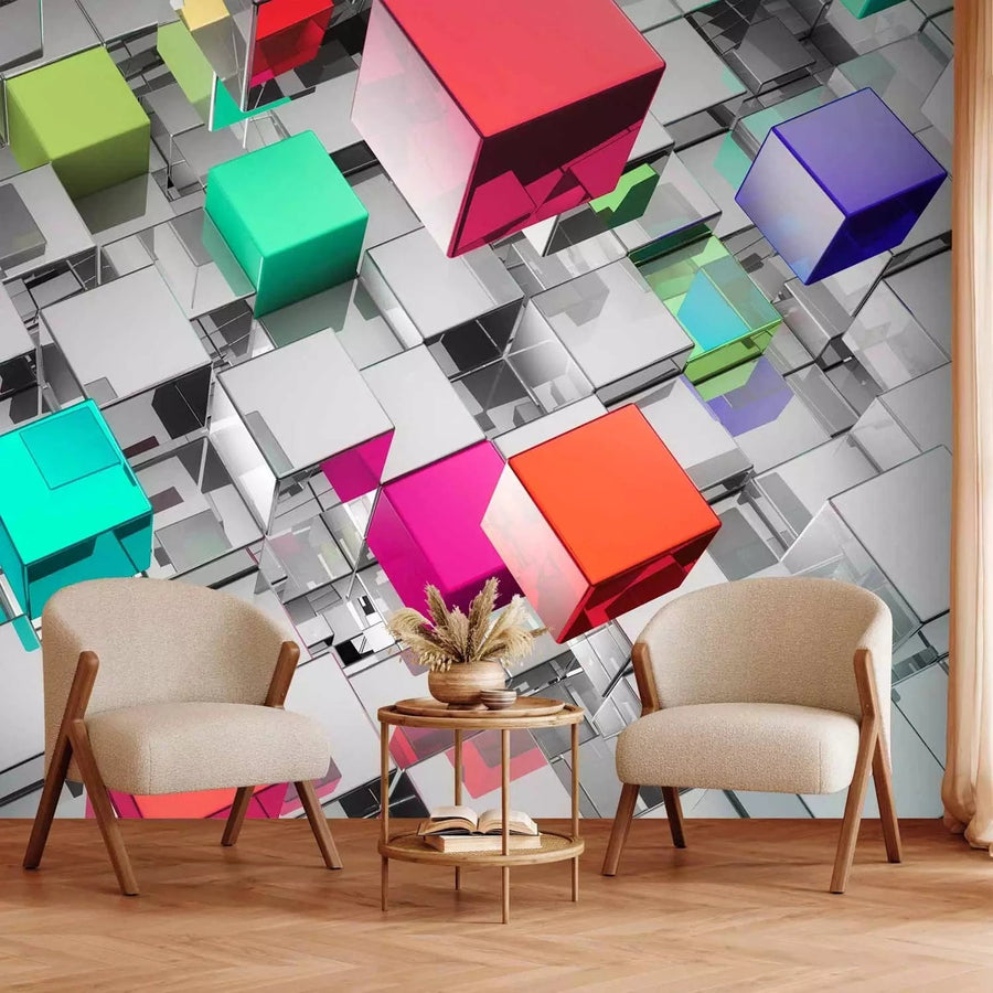 Fototapetes ar 3D ilūziju - Futūristiski kubi sarkanā krāsā, 92116 Tapetenshop.lv