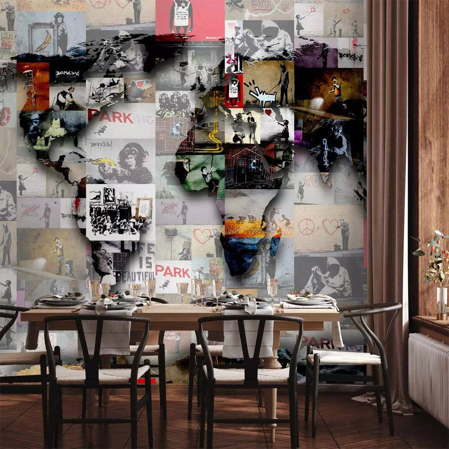 Fototapetes ar graffiti - pasaules karte kolāžas veidā no grafiti G-ART