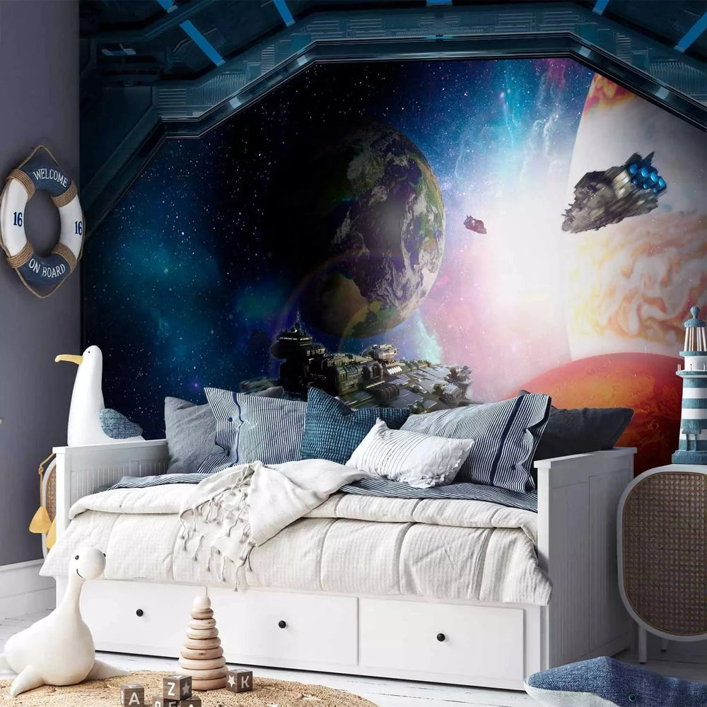 Fototapetes jauniešu istabai - Kosmosa motīvs ar skatu uz planētām G-ART