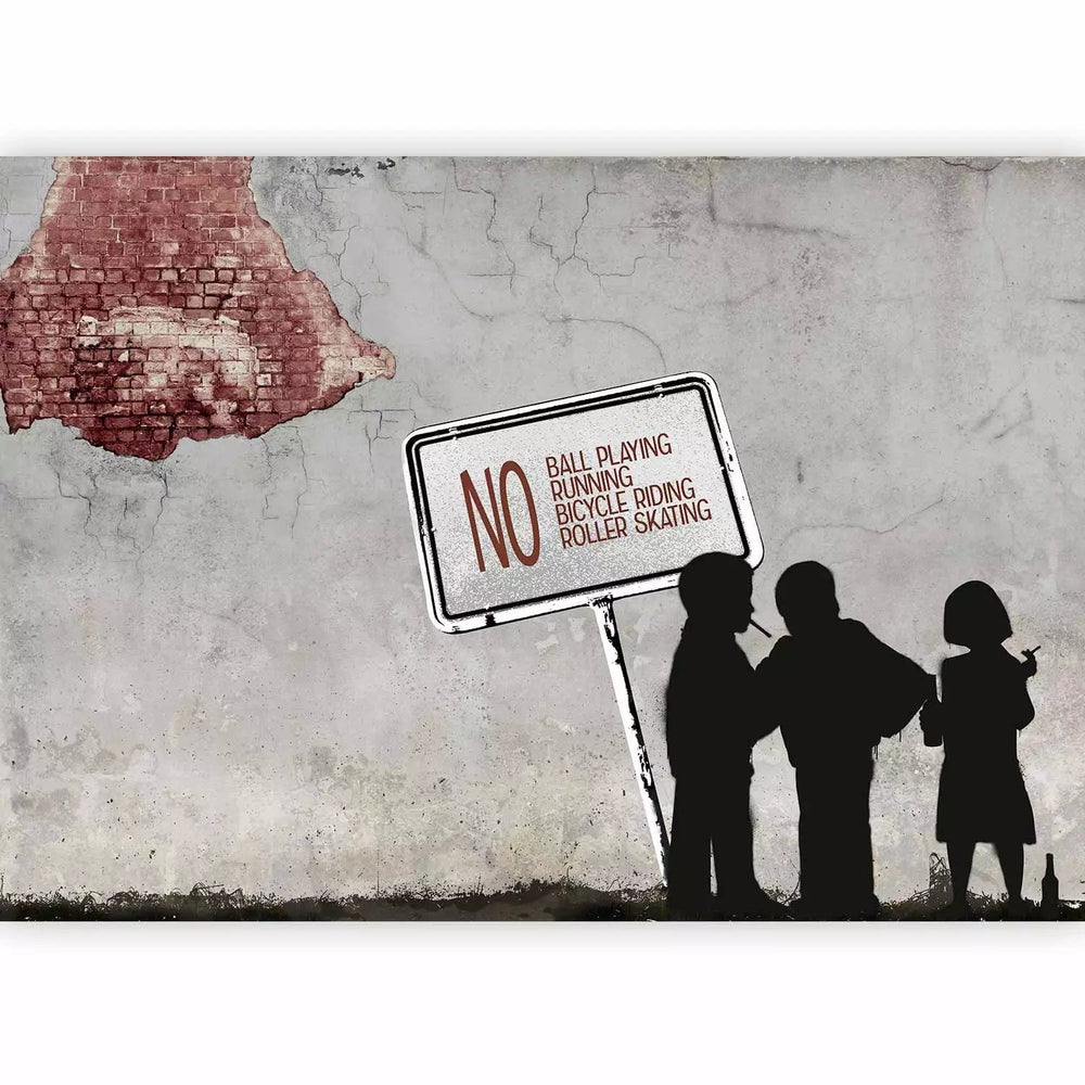 Pelēkas fototapetes ar uzrakstu No running, no ball playing G-ART