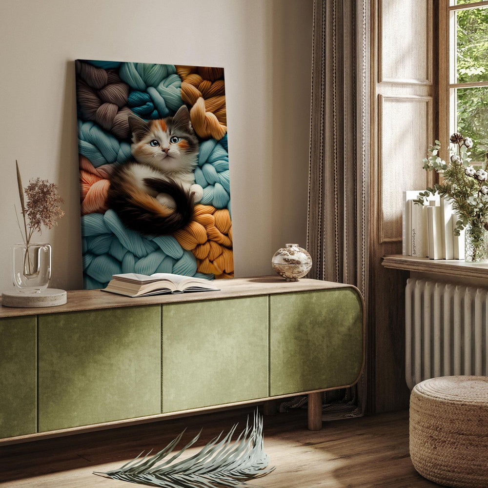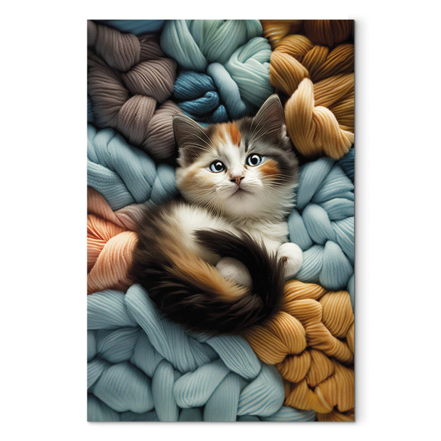 Canvas-taulut - Kissanpentu lepää monivärisellä langalla, 150094🎨🐾