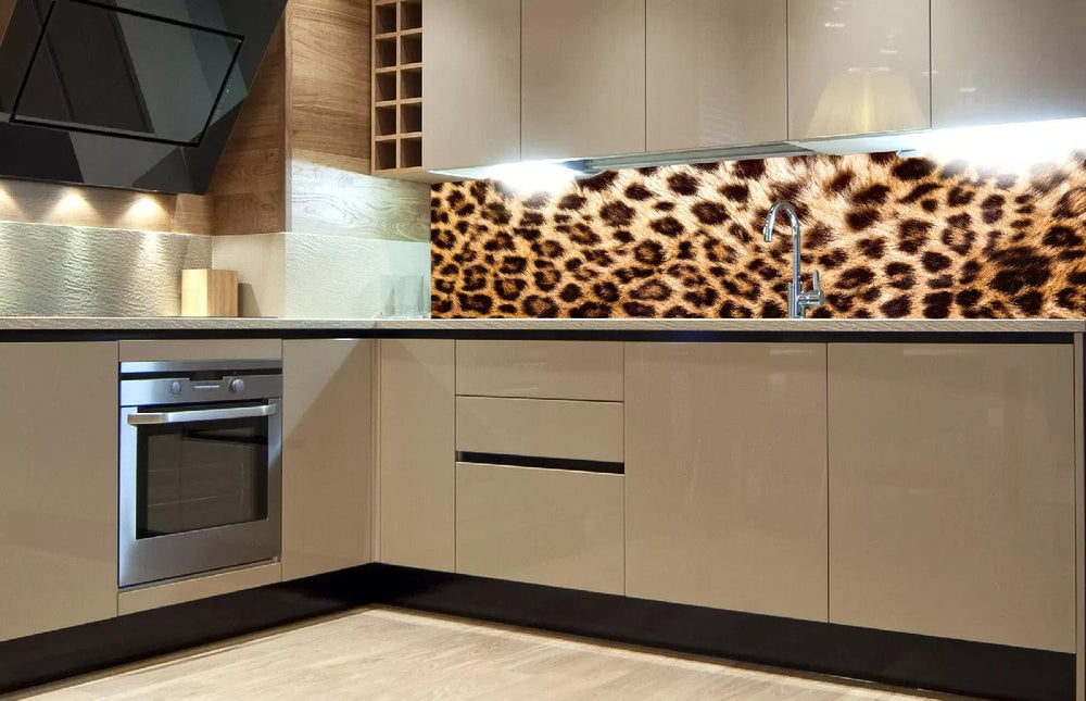 Laminoidut valokuvatapetit keittiöön - Leoparda āda (180x60 cm)