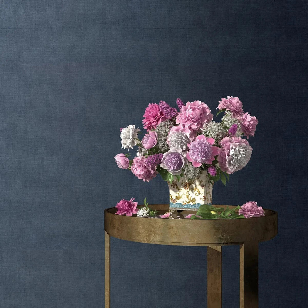 Tumši zilas matētas tapetes ar auduma tekstūru mierīgam interjeram   Tapetenshop.lv