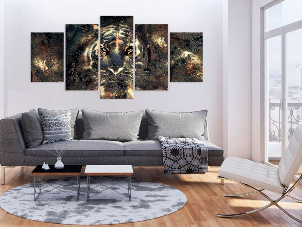 Glezna ar tīģeri uz tumša fona - Krāšņais skaistums, (x5), 92073 G-ART