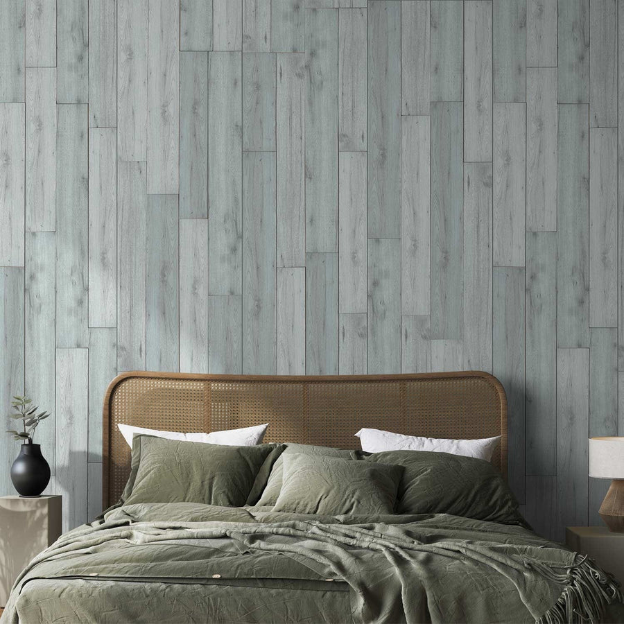Zili zaļās tapetes ar pīta koka rakstu AS 377063 AS Creation
