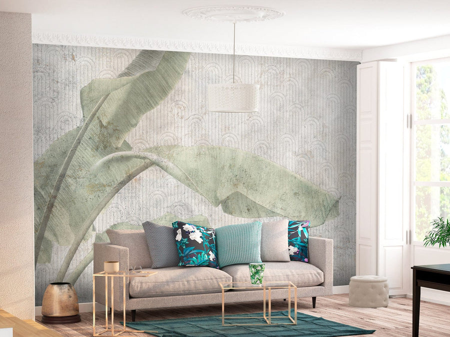 Fototapetes - Eksotiskas lapas pieklusinātos zaļos toņos - 151875 G-ART