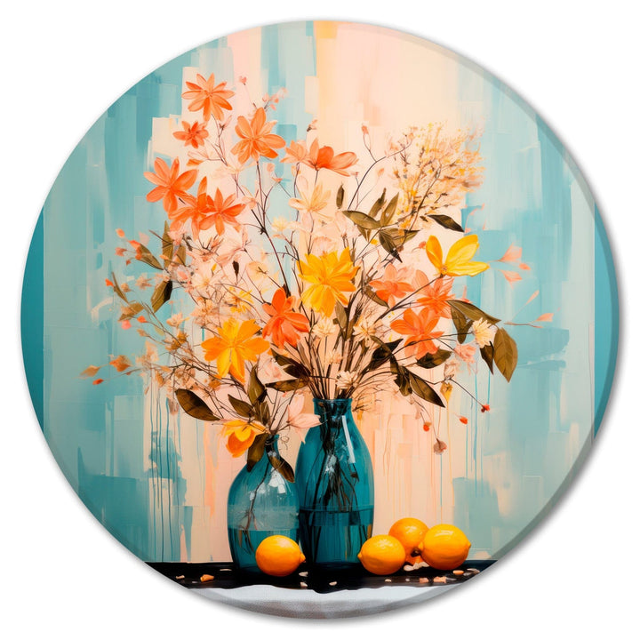 Pyöreä сanvas-taulut - Kukkia ja sitruunoita abstraktilla taustalla, 151588