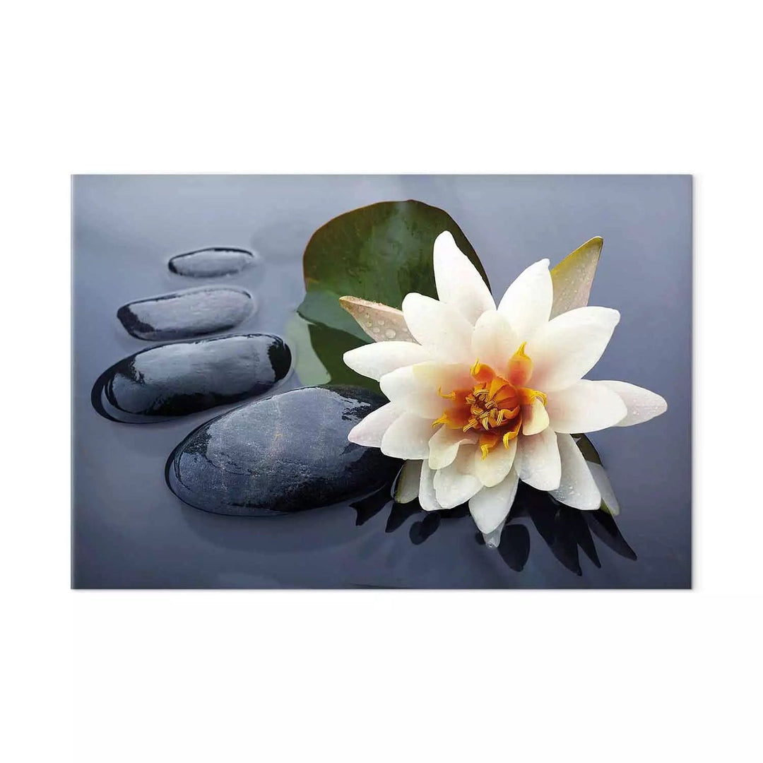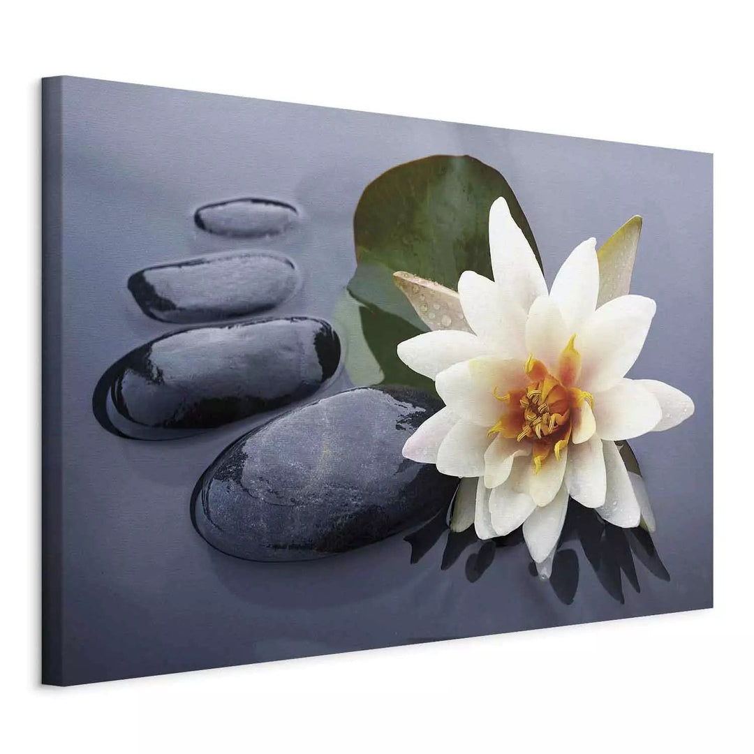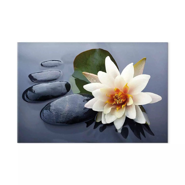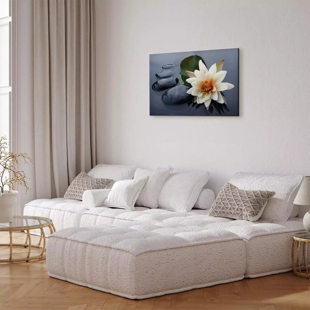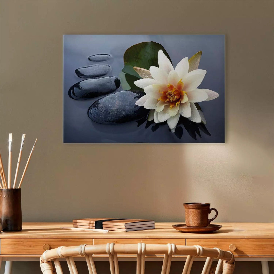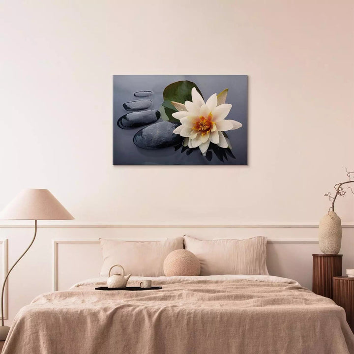 Canvas-taulut - Valkoinen vesililja ja kiviä harmaalla taustalla, 162552