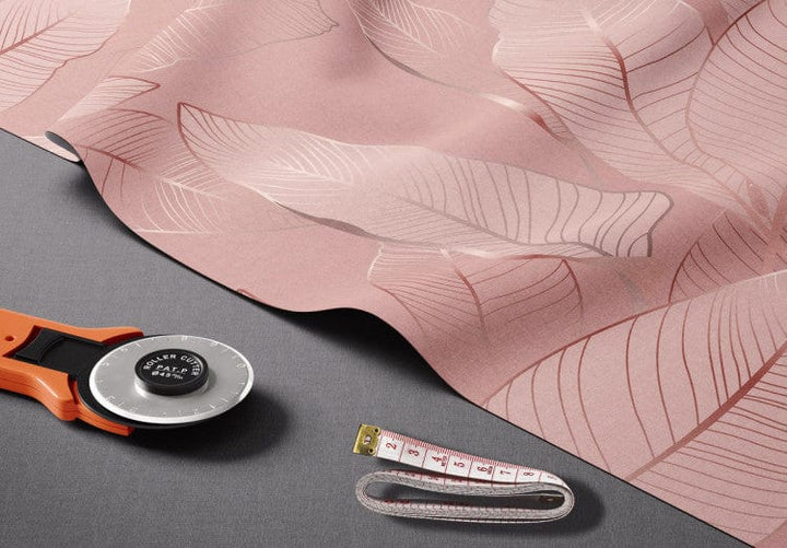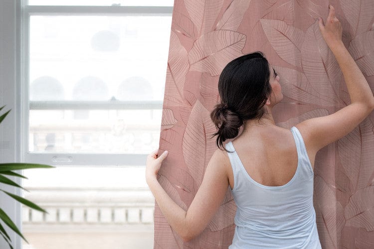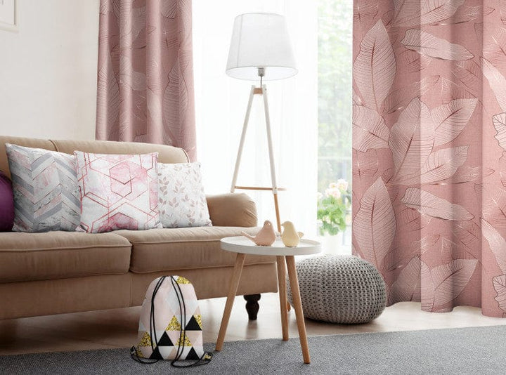 Koristeelliset verhot - graafiset lehdet vaaleanpunaiset, 147680