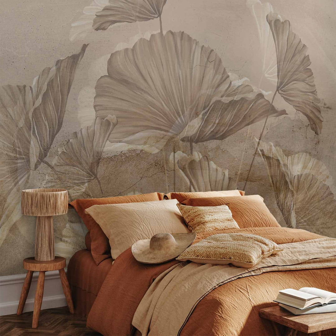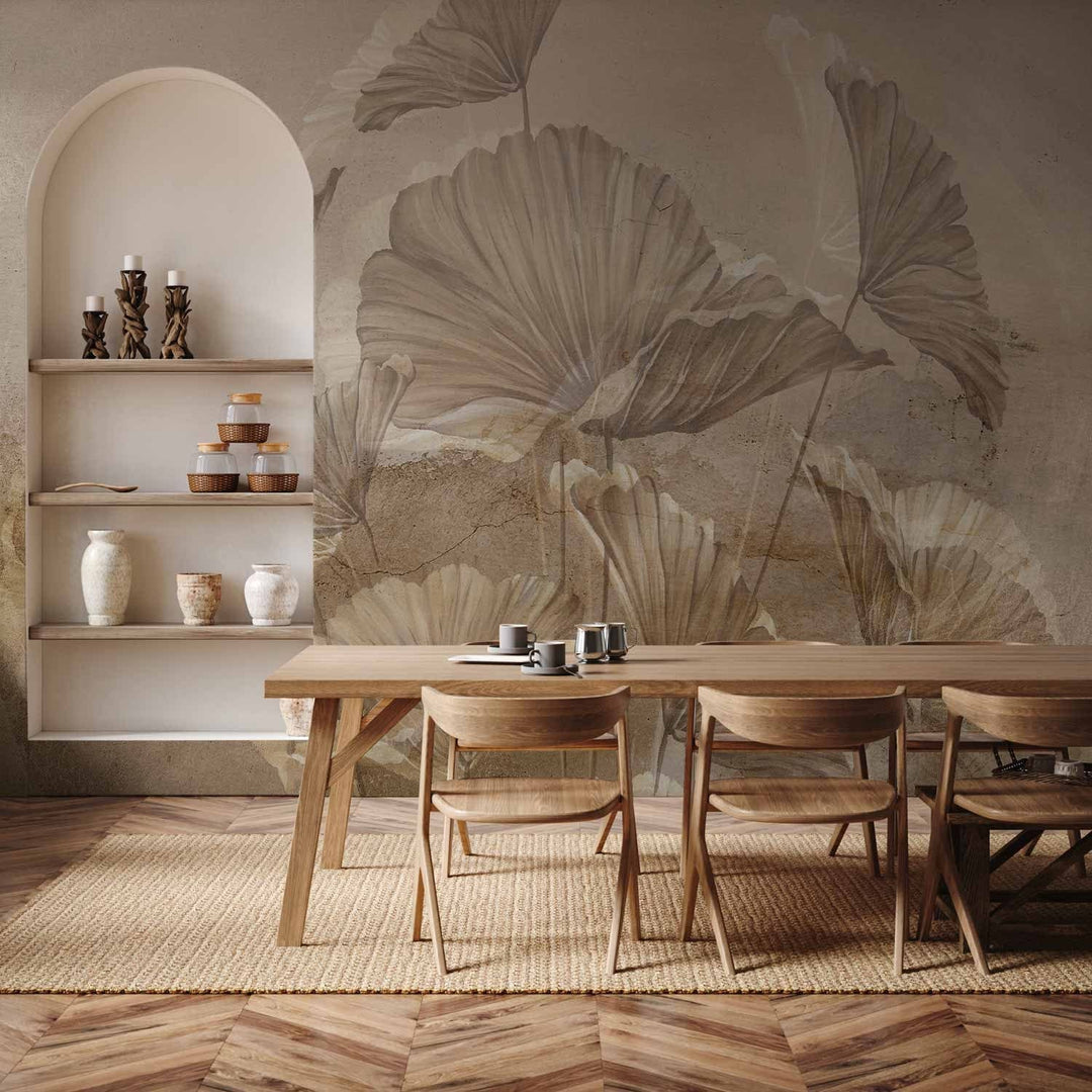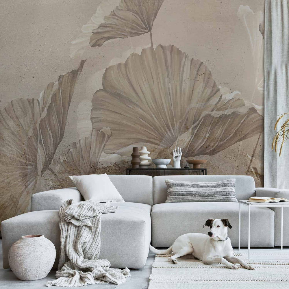 Valokuvatapetti lehtien kanssa vintage-tyyliin - Beige lehdet, 142701