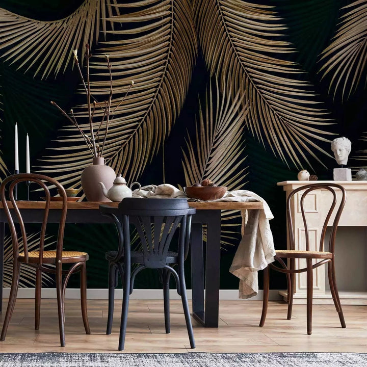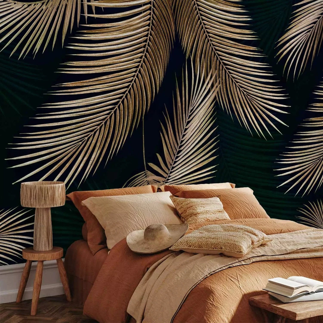 Valokuvatapetti - Eksoottinen kasvillisuus - palmunlehti kuvio hienovaraisissa väreissä - 142253