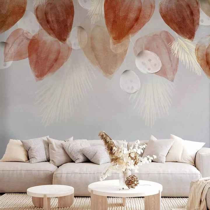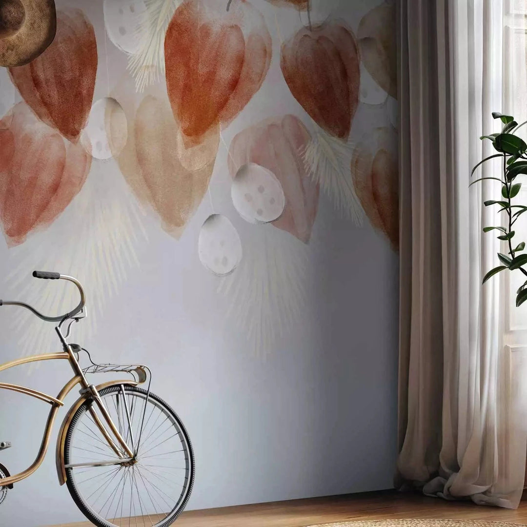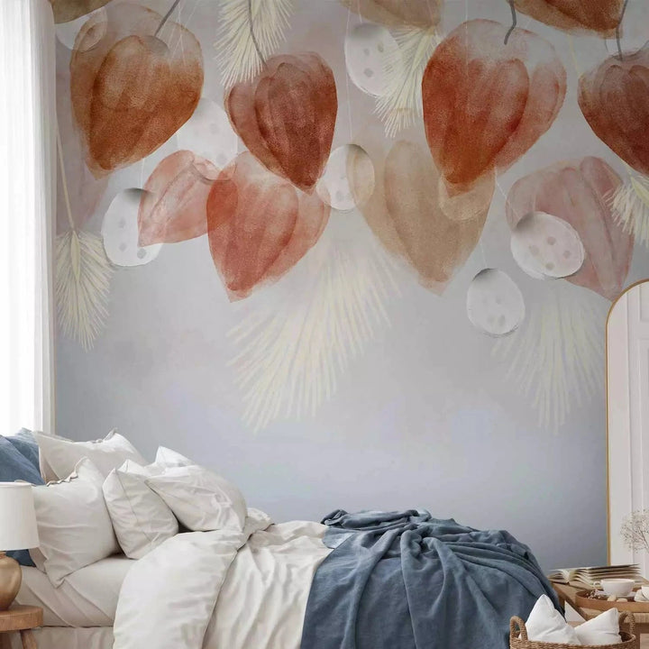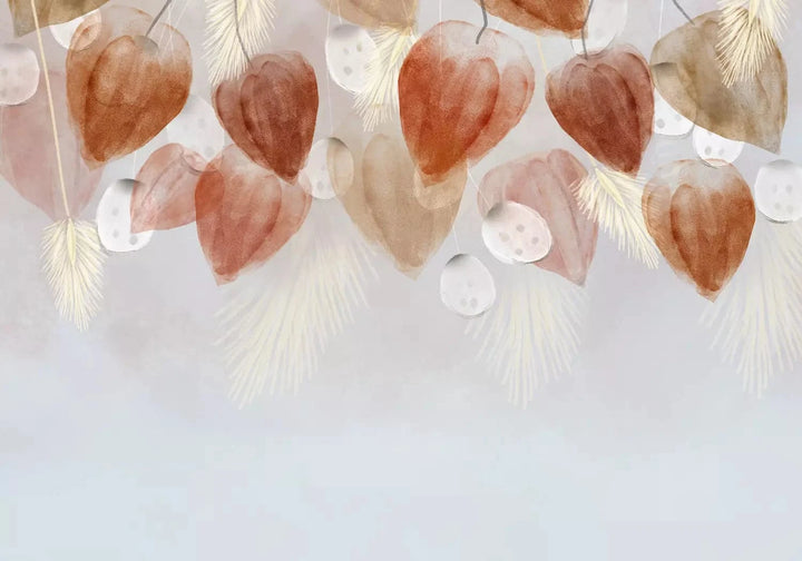 Valokuvatapetti- Kuivatut kukat - kuvio, jossa on riippuvia kukkia harmaalla pohjalla, 142641